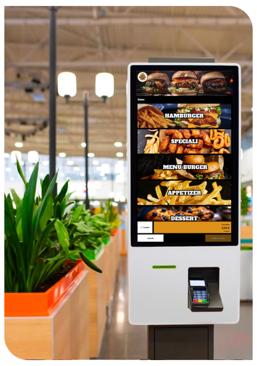 Aumenti il valore medio senza dipendere dallo staff grazie a suggerimenti contestuali (aggiunte, upgrade, bundle, servizi extra) nel momento giusto. Il software è installabile su diversi hardware kiosk e si adatta alle esigenze del punto vendita. Quando vuoi fare un salto di efficienza, puoi integrarlo ai sistemi in-store (es. KDS/produzione, loyalty, coupon) per snellire le operazioni e rendere il flusso ancora più robusto.